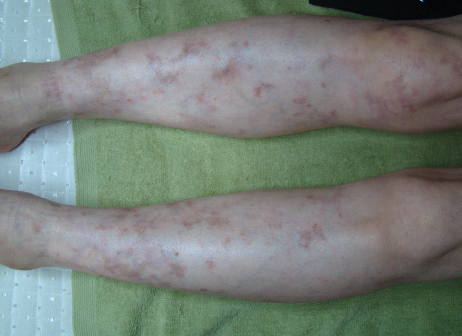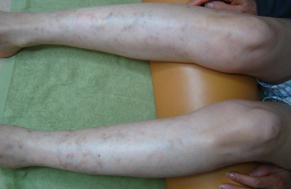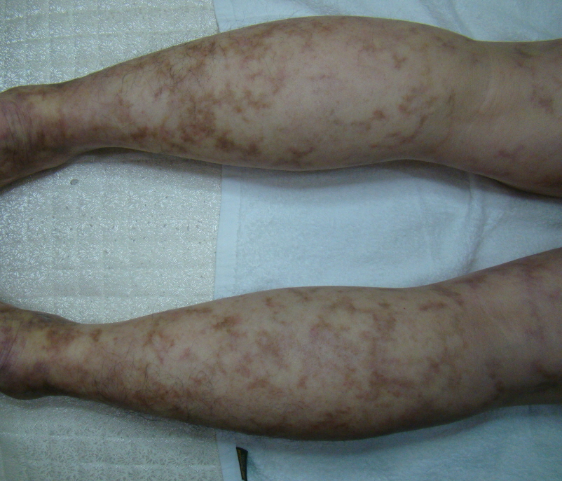 <하지에 대칭적으로 발생하는 망상청피반, 청피반성혈관장애(청피반양혈관염)>