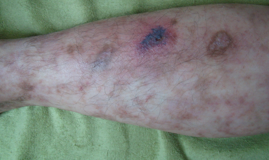 <피부궤양이 형성된 청피반성혈관장애(청피반양혈관염)>