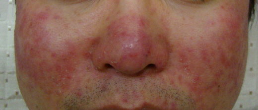 초기에는 얼굴 중심부 위주로 구진, 농포가 발생하다가 점차 얼굴 전체로 확산되면서 두피 염증까지도 동반될 수 있습니다. 얼핏 보면 여드름처럼 보이기 쉽기 때문에 주사를 여드름으로 간과하고 초기에 적절한 치료를 놓치는 경우가 많습니다.