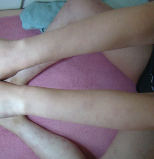 망상청피반은 보통 무릎 주변이나 발목 주변처럼 피부가 얇은 부위에 먼저 그물반, 울혈반이 생깁니다. 그리고 점차 종아리, 허벅지, 엉덩이, 상지, 얼굴로 범위가 넓어집니다.