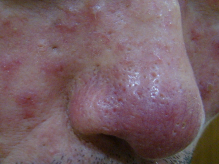 주로 코 주변 피부의 확장으로, 코 피부가 울퉁불퉁해지는 비류가 생깁니다. 이는 염증이 반복되면서 피부조직이 변해서 생긴 현상입니다.