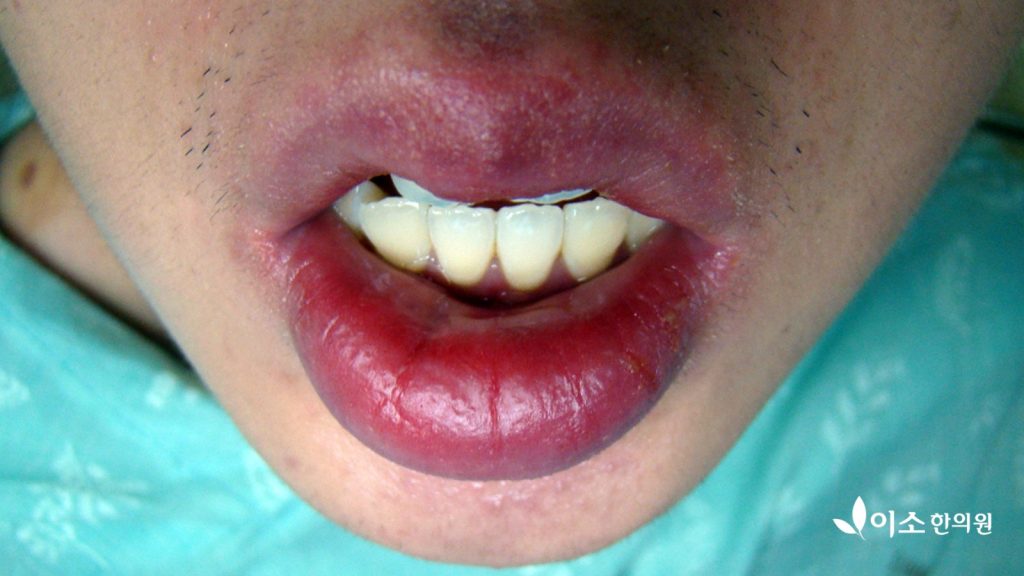 맥관부종, 혈관부종으로 입술이 부으면 땡땡하고 열이 나면서 간지러운데, 이때도 정확한 진단이 바탕이 되지 않으면 구순염으로 오인하기 쉽습니다.