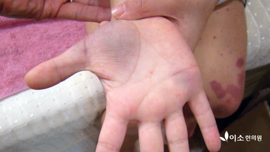 이때 가장 중요한 것은 무엇보다 자반증을 하루빨리 낫게 하는 것입니다. 여기서 하루빨리 회복된다고 하는 것은 재발, 증상이 다시 발현되지 않고 회복되는 것입니다.