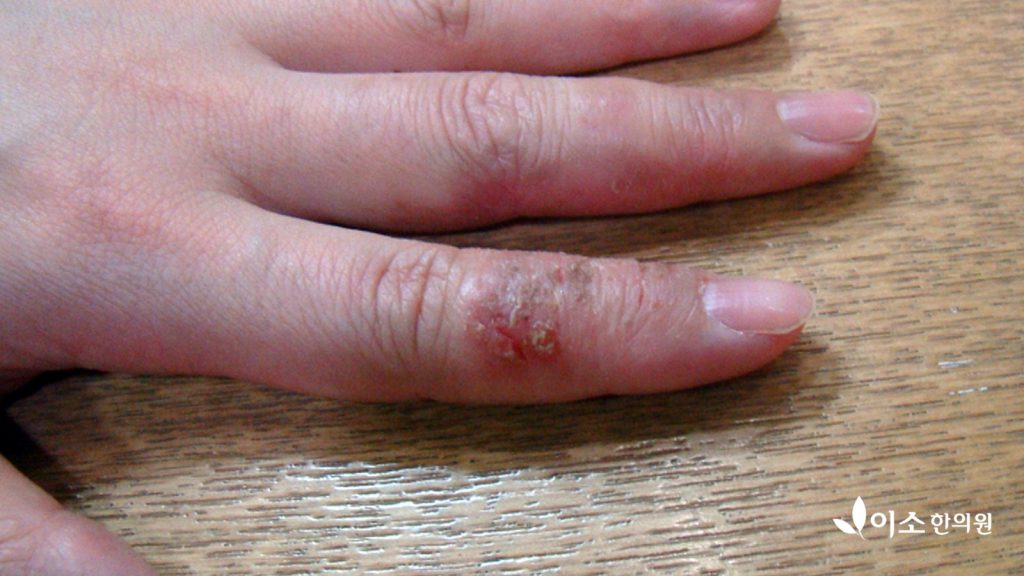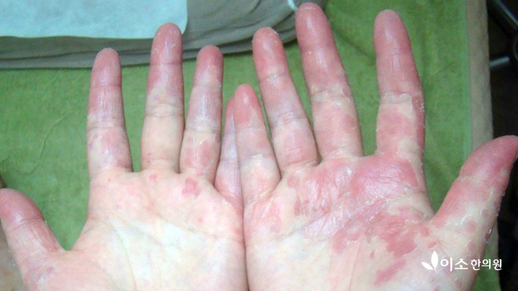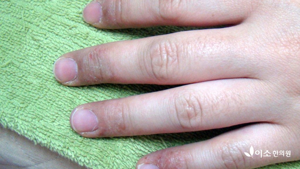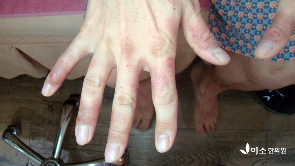 체질 진단과 한약 치료를 통해 면역체계를 안정시키고 손에 적절한 보습을 해주는 치료법이 필요합니다.