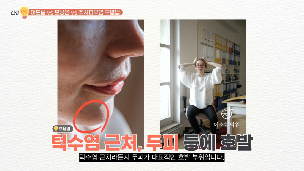 여드름, 모낭염, 주사피부염의 특징에 관해 이야기 해봤습니다.