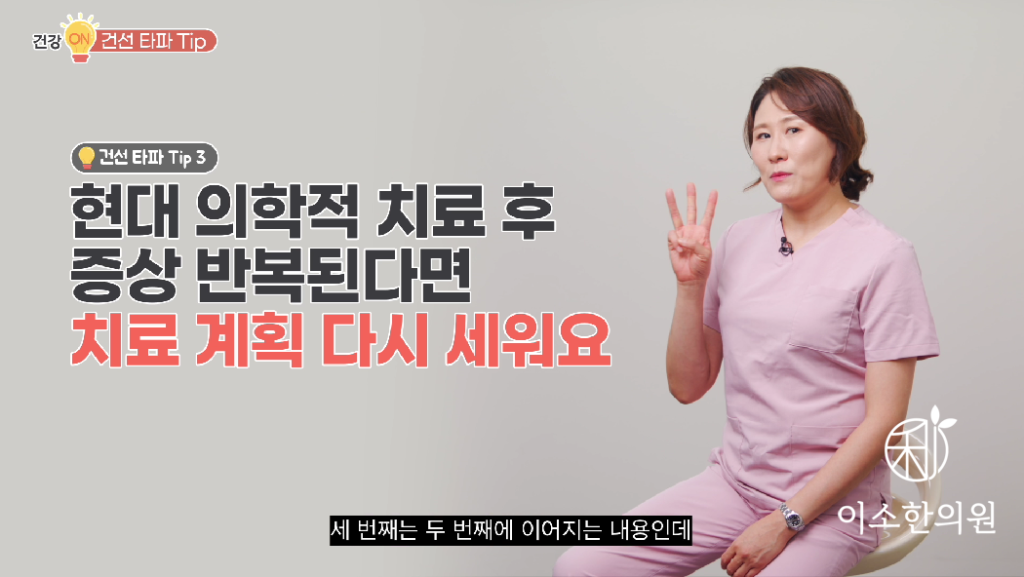 현대의학적인 약물을 일정 기간 성실히 사용했는데 증상이 반복된다면 빨리 치료 계획을 다시 세워야 합니다. 보통 1~2달 정도 면역반응을 억제하는 여러 치료를 해보시고 그래도 반복된다면 빨리 한의학적인 치료의 병행이나 변경을 권해 드립니다.