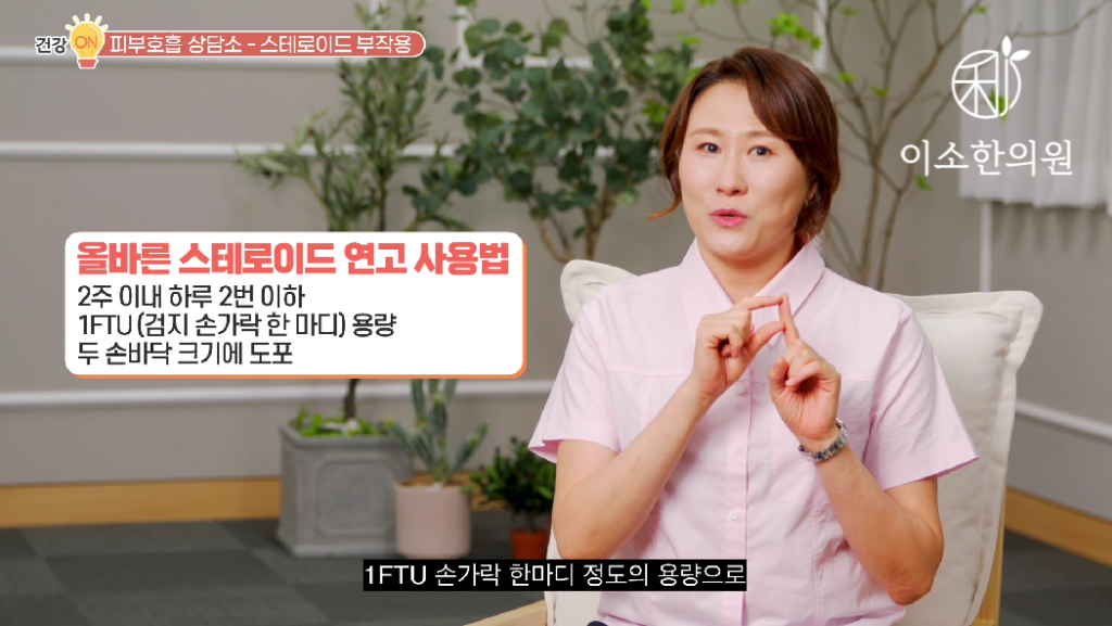 환절기 때 국소적으로 염증이 심해진다면 2주 이내 하루 2번 이하, 그리고 손바닥 2마디에 1FTU 손가락 한마디 정도의 용량으로 짧게 사용해주시는 것 까지는 OK입니다. 어릴 때부터 알레르기 질환, 피부 질환을 앓았던 분들은 주변 환경이나 스트레스, 면역력 등의 상태에 따라 일시적으로 또 증상이 발현 될 수 있습니다. 물론 몸을 잘 관리해서 주변 환경변화에도 몸이 흔들리지 않는 상태가 되면 좋지만 면역체계가 워낙 예민하신 분들이라 가끔 또 한 번씩 증상이 나타날 수 있는데 1년에 1~2번 정도 스테로이드 외용제 적절하게!! 사용 하시고 넘어갈 수 있다면 괜찮을 거 같습니다.