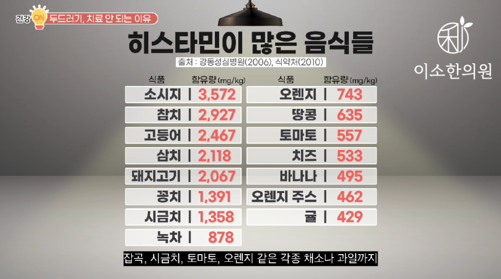 자, 두 번째입니다. 두드러기가 잘 낫지 않는 이유는요. 다 아시는 바로 그 히스타민 때문입니다.