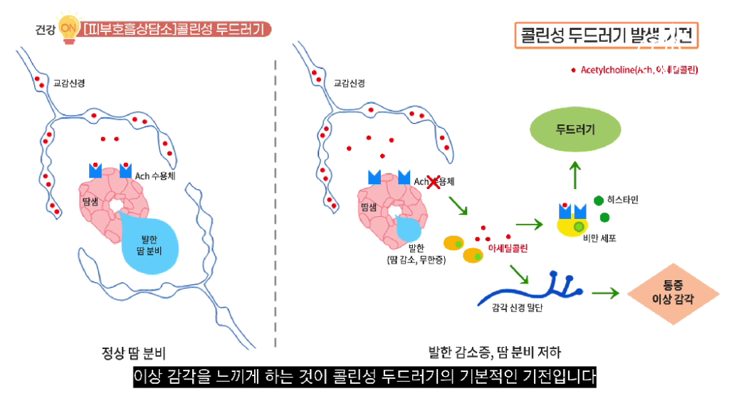 자, 우선 콜린성 두드러기 왜 생기는지 다시 한 번 좀 짚고 넘어갈게요.