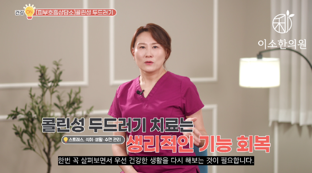 대부분의 항원 없는 두드러기가 그러하듯 콜린성 두드러기도 뭐 피로나 스트레스 등이 누적 이 되다가 어느 한계치를 넘어서면 어느 순간 정상적인 체온 조절 능력에 문제가 생기고 자율신경계가 오작동을 하면서 두드러기가 발생되는 것이기 때문에 치료 원칙도요. 몸이 생리적인 기능을 회복할 수 있도록 해야 합니다.만약 평상시에 긴장이나 스트레스가 많았다면 환경을 좀 개선 해주시는 것도 좋겠고요. 최근 식이나 생활 관리나 수면 관리 등이 혹시 나쁘지는 않았는지 한번 꼭 살펴보면서 우선 건강한 생활을 다시 해보는 것이 필요합니다. 자, 이분 아마 군대에서 스트레스 심하셨나 봐요. 그래서 스트레스 환경이 없어지면서 회복이 되었나본데. 아마 지금 다시 피곤하거나 혹은 스트레스 받는 일이 없는지 잘 살펴보면 좋겠습니다.