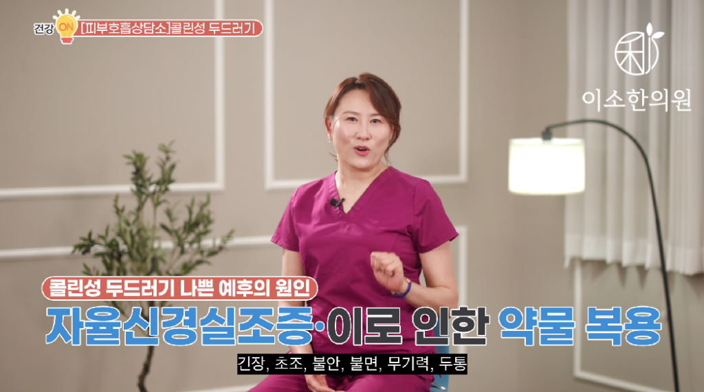 자율신경계의 이상으로 무한증이나 콜린성 두드러기가 발생할 수 있는데 정신과 약물까지 복용 중인 경우에는 건강한 생활 습관만으로 잘 호전이 안 되죠. 예후가 좋지 않기 때문에 한의학적인 치료의 병행도 필요하고요. 치료 기간을 조금 길게 생각해야 합니다.