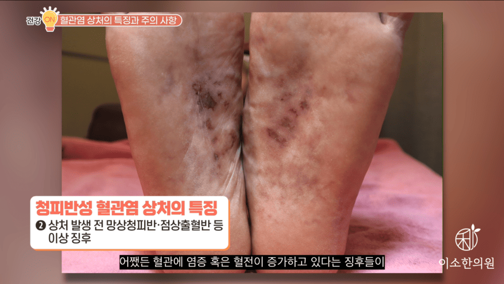 혈관염으로 인한 피부 변화 – 자반증, 얼룩덜룩 색 변화, 피부 상처 등
