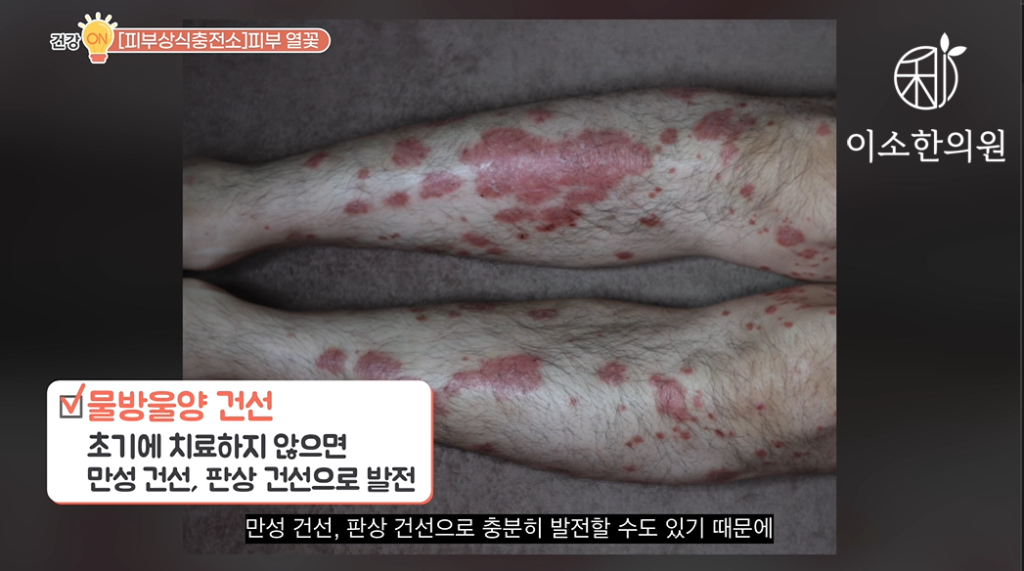 피부 열꽃 질환 ❸ 물방울 건선, 초기에 치료하지 않으면 만성 건선, 판상 건선으로 발전