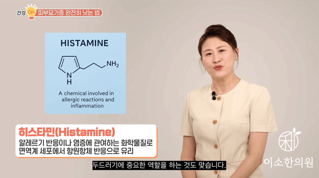“히스타민을 처리하지 못하는 몸 상태를 치료의 도움을 받아서 회복하는 것이 빨리 피부묘기증에서 벗어나는 지름길”