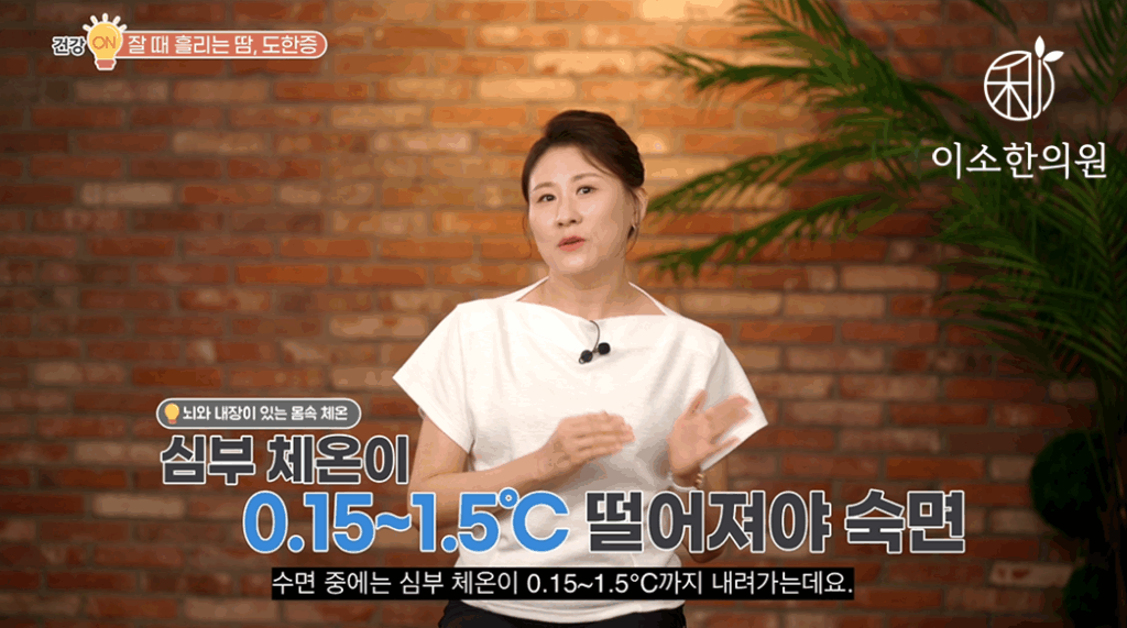 잘 때 땀이 난다면요. 가장 기본적으로 수면 환경부터 체크해야겠죠. 수면 중에는 심부 체온이 0.15~1.5℃까지 내려 가는데요. 체온이 적절하게 하강해야만 숙면을 취할 수 있습니다. 근데 수면 환경이 지나치게 덥다면 체온이 올라가고 땀도 나고 푹 잠들기 힘들죠. 만약 밤에 식은땀을 흘린다면요. 우선은 온수매트를 깔고 자는 건 아닌지, 실내온도가 높진 않은 지부터 체크해야겠습니다.