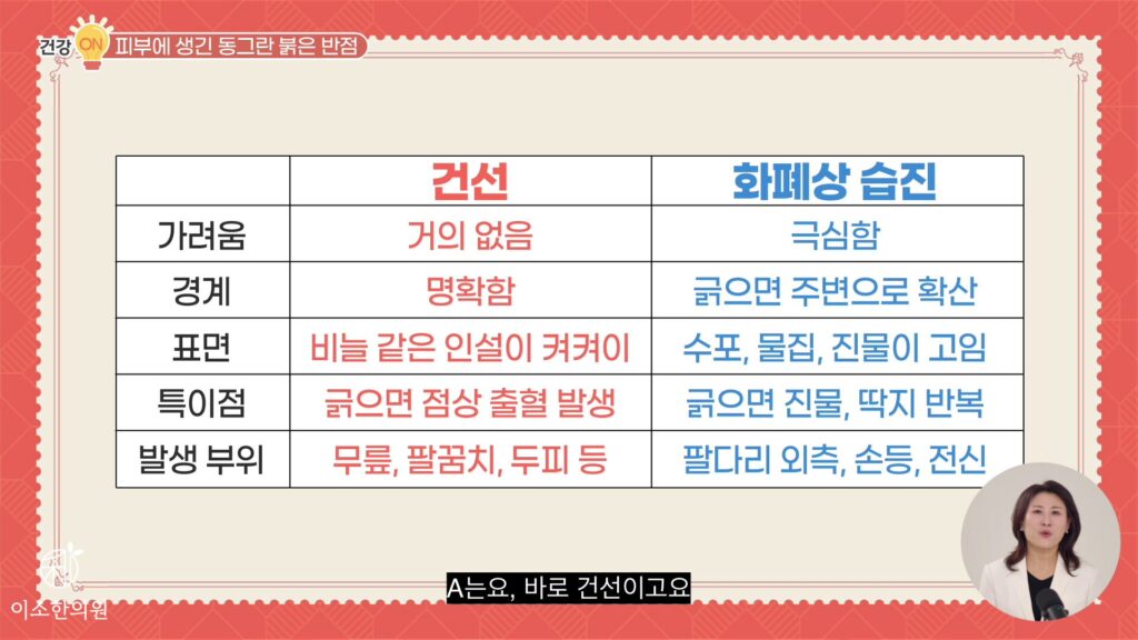 “피부에 동그란 붉어짐, 화폐상 습진과 건선을 감별해야 하는 이유는요.