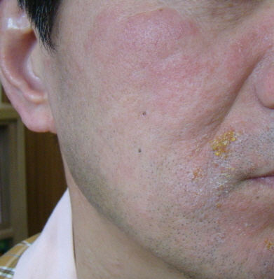 <붉어짐과 인설을 동반하는 지루성 피부염>