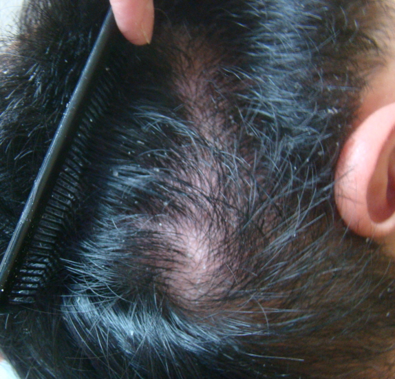<인설이 동반되는 지루성 두피염>
