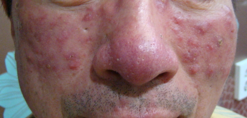 <스테로이드 장기복용 후 발생한 등 여드름>
