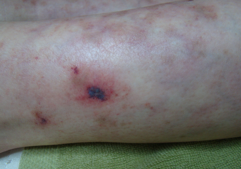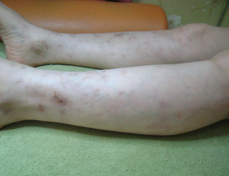 <하지에 대칭적으로 발생하는 망상청피반, 청피반성혈관장애(청피반양혈관염)>