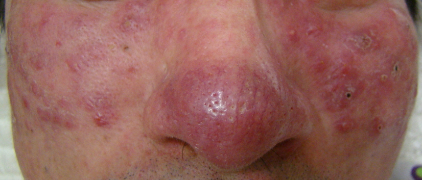 여기서 더 심해지면 염증성 구진과 농포가 나타나는데 극심한 경우에는 염증성 결절, 조직의 증식으로 바뀌어서 피부가 변형되게 되고 통증이 동반될 수도 있습니다.