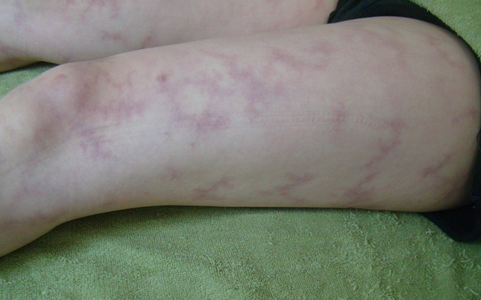 외부온도변화에 따라 피부에 그물모양의 반을 형성하는 망상청피반은 추운 환경에서 악화되는 것이 특징입니다. 그렇기 때문에 겨울철에 청자색의 반이 짙어지고 범위도 넓어지는 것이 이 질환의 특징입니다.