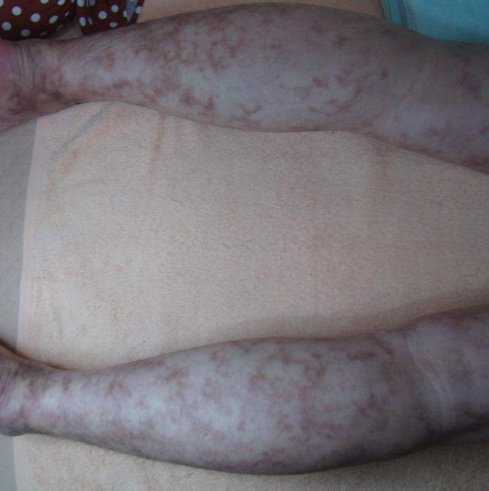 하지만 만약, 청자색의 그물모양이 발목 주변, 무릎 주변에 생기기 시작하고, 부위가 점차 상체 쪽으로 넓어진다면 망상청피반을 의심해봐야 합니다.