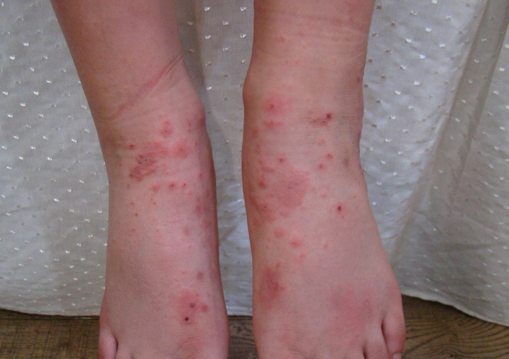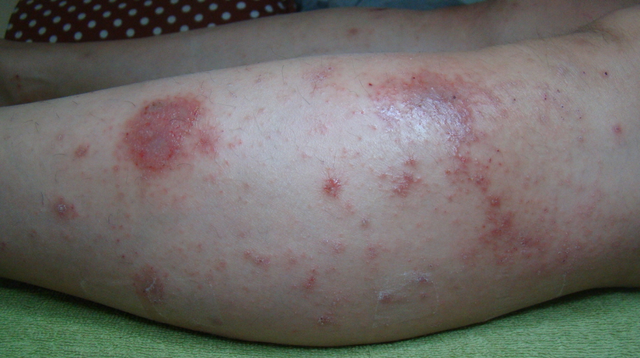 <아토피 피부염과 같은 다른 피부질환을 긁은 후 화폐상 습진으로 발전한 케이스>