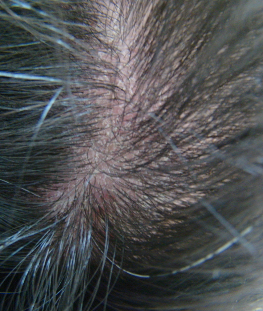 지루성두피염은 염증부위의 표피탈락이 일어나고 인설이 생기면서 비듬처럼 보이기도 합니다. 이런 인설은 희끗희끗한 건성비강진으로 나타나기도 하고 홍반과 삼출물(진물), 가피(딱지)를 동반한 유성의 지방성 비강진으로 나타나기도 합니다.