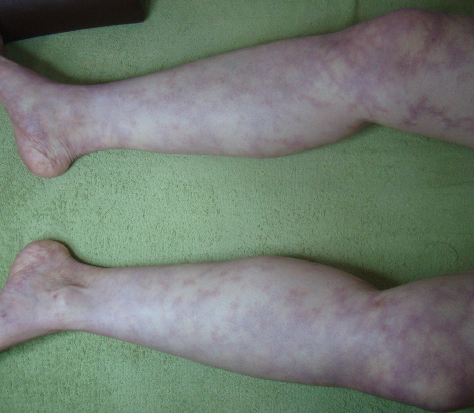 하지 위주의 피부색의 변화, 발목 관절 주변의 피부 궤양, 감각이상, 통증은 망상청피반, 청피반성혈관장애의 주증상입니다. 그렇기 때문에 항인지질항체 증후군과 이들 질환을 연관 지어 생각해도 될 것 같습니다.