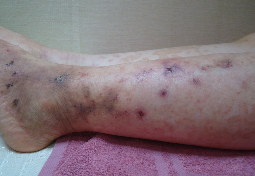 <피부색의 변화, 피부 궤양, 통증을 동반한 혈관염>