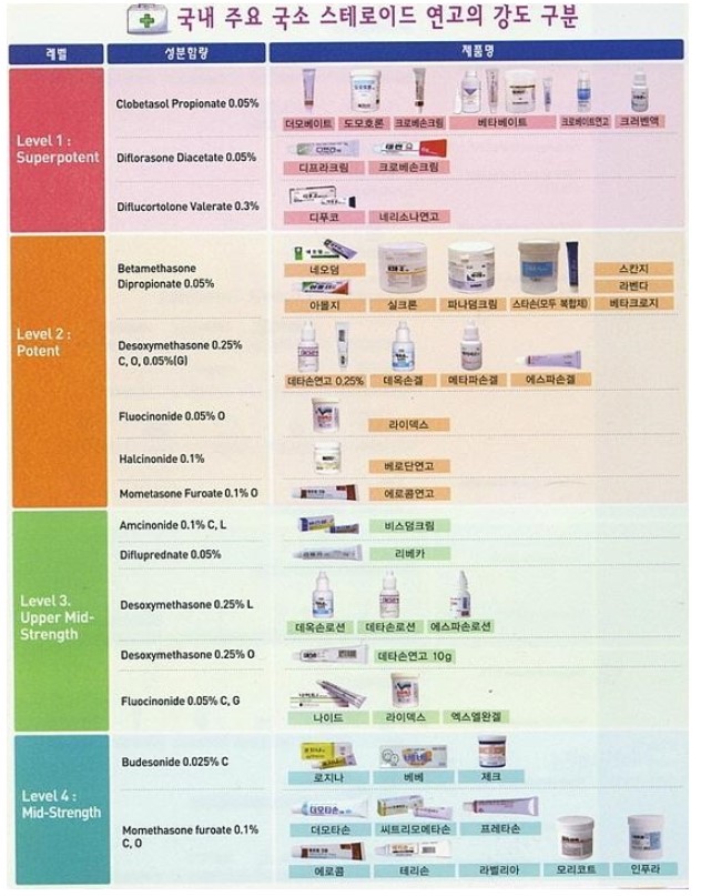 스테로이드는 가장 순한 스테로이드 제제부터 가장 강력한 스테로이드까지 1등급에서 7등급으로 나누어집니다.