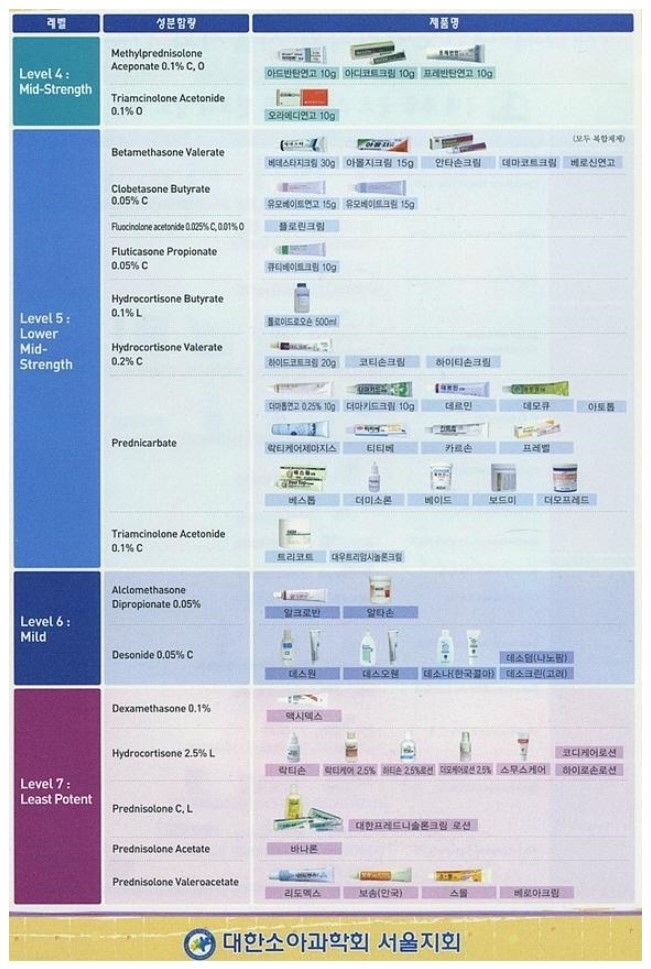 <스테로이드 등급> 출처 – 대한소아과학회 서울지회