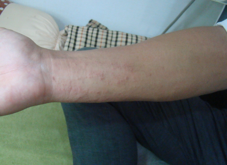 구진이나 농포처럼 여드름과 같은 양상을 나타나기도 하고, 피부가 부풀어 오르는 두드러기처럼 나타나기도 합니다. 그리고 홍반이나 습진처럼 보이기도 합니다.