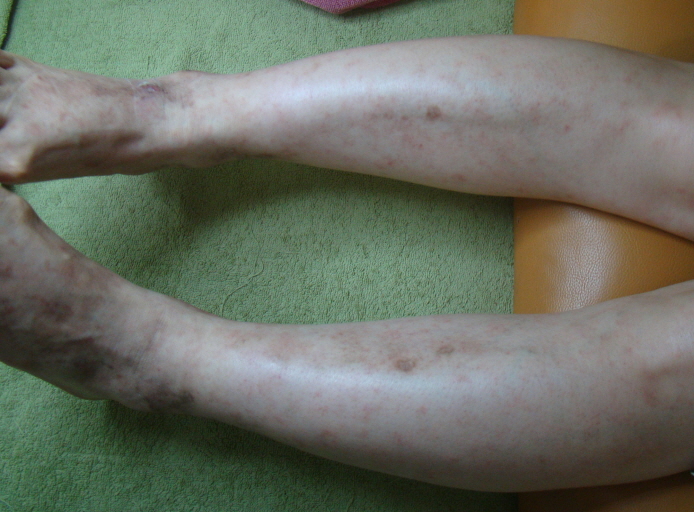 <혈행장애로 인해 얼룩덜룩해진 피부>