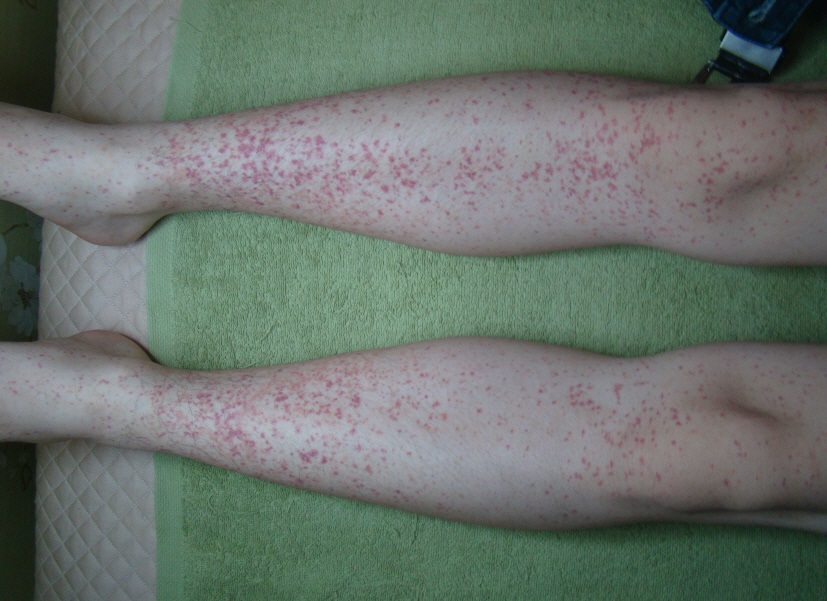 우선 피부에 붉은 반점이 생긴다면 자반증을 의심해볼 수가 있습니다. 다만, 자반이 생기는 부위에서 차이를 보일 수 있습니다. 일반적인 자반증은 무릎 이하에 하체에 양측성으로 넓은 부위에 걸쳐서 자반이 발생합니다.