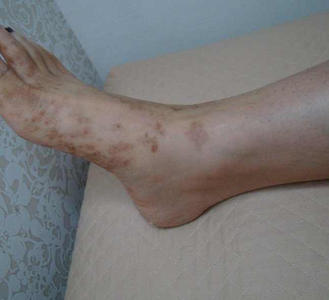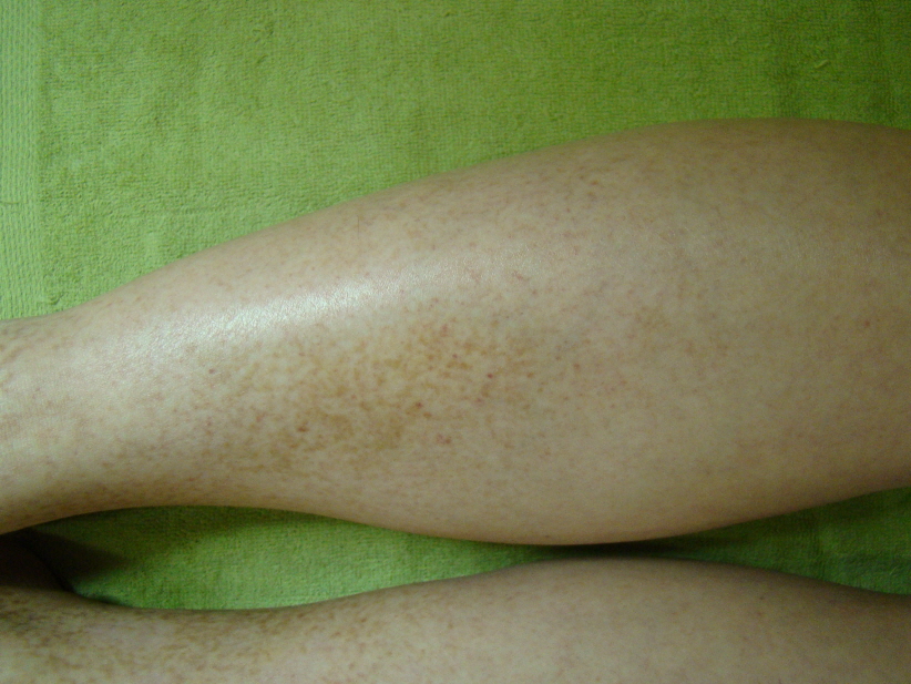 일반적인 자반증은 치료 한두 달 이내에 붉은 반점이 거의 소실됩니다. 하지만 황갈색의 색소침착까지 진행된 상태의 색소성 자반증은 색 변화가 미비할 수밖에 없습니다.