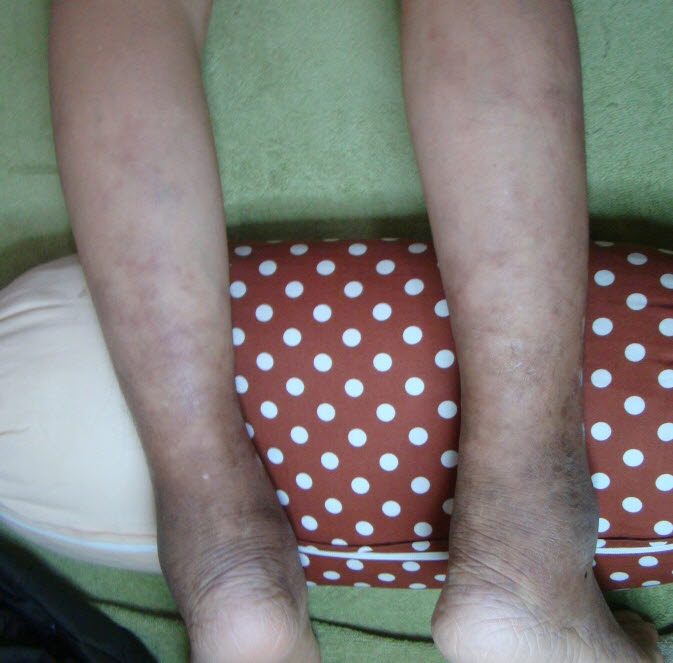 그리고 이 경우에는 주로 피부에 나타나는 촉지성 자반과 궤양, 농포, 결절 등의 피부 증상이 주로 나타납니다.