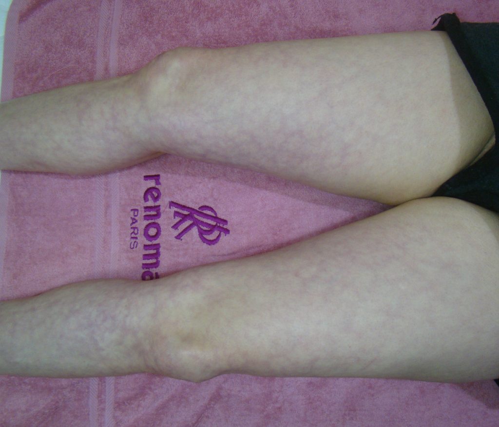 망상청피반, 그물모양울혈반 타입 4. 얼기설기 변화하는피부색