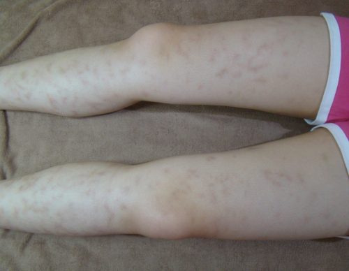 다리에 바람만 불어도 그물모양으로 울긋불긋 올라오고