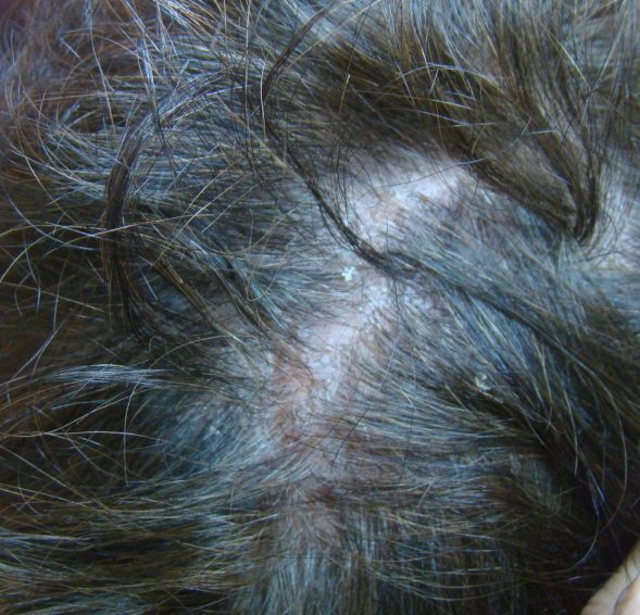 지루성 두피염이 진행되면 진물과 가피, 악취가 동반됩니다