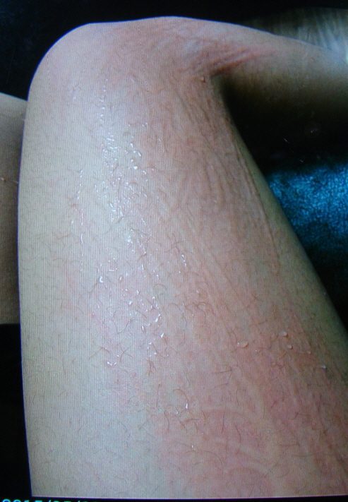 마찰이 가해진 부위에 두드러기가 올라오면 마찰이 가해지지 않은 부위에도 두드러기가 번져 여기저기 간지럽습니다.