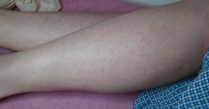 붉어짐은 아주 선명한 붉은색보다는 핑크빛에 가까워서 피하 출혈로 인한 자반증과는 구분이 가능하고 수 시간에서 하루 이내에 없어집니다.