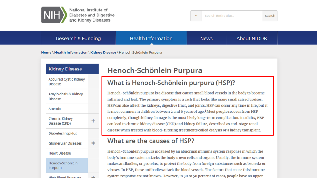 https://www.niddk.nih.gov/health-information/kidney-disease/henoch-schonlein-purpura (글의 출처는 ‘national institute of diabetes and digestive and kidney disease’라는 곳입니다.)