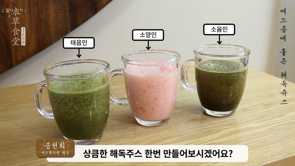 소양인은 체내 열 배출이 안 되어 여드름 증상이 심해지기도 합니다. 더운 여름철, 아침식사 대용으로 해독주스를 드시면 도움이 됩니다.