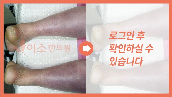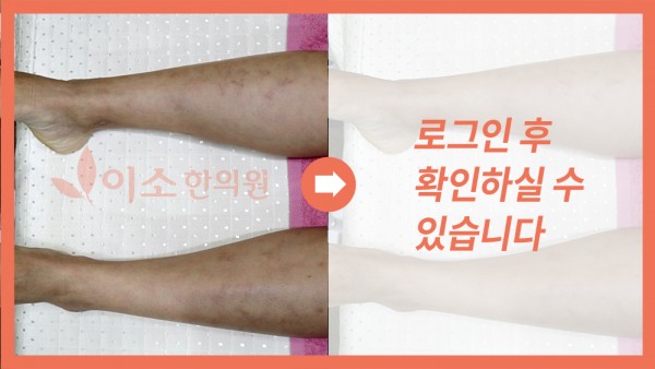 7년전발병한 망상청피반, 울혈반모양혈관염으로 내원한 30대 여성의 치료 사례 입니다 . 피부의 얼룩덜룩한 색변화 뿐 아니라 간헐적으로 간헐적으로 피부 궤양 상처도 생기고 항상 몸과 손발이 차다고 호소하던 분이었습니다 태음인으로 진단, 식이생활관리와 한약 침치료를 병행하였습니다 치료 전 치료 후