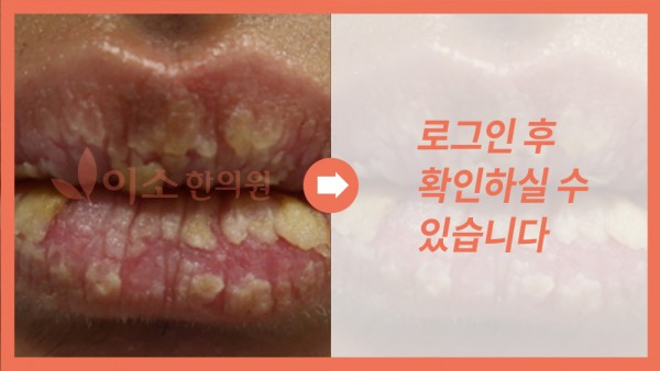 3년전 접촉성구순염으로 시작, 스테로이드연고, 프로토픽 연고, 이소티논 등을 복용 하면서 박탈성구순염으로 발전했던 구순염 치료 사례 입니다. 치료 전 치료 후