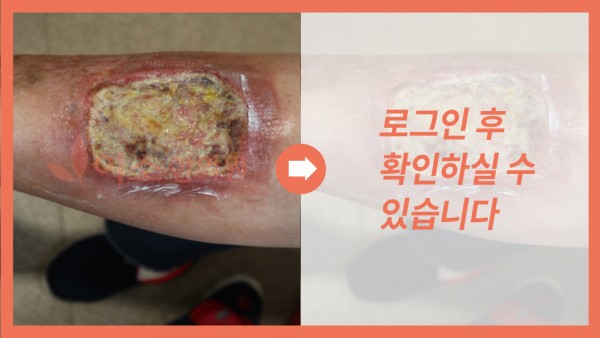 피부의 몽우리, 붉은 반점 등이 수년간 반복되면서 피부 궤양으로 발전한 혈관염 환자 치료 사례입니다. 혈관의 이상으로 인한 피부 괴사, 궤양은 혈관의 이상 상태가 개선되어야 재생 될 수있습니다.