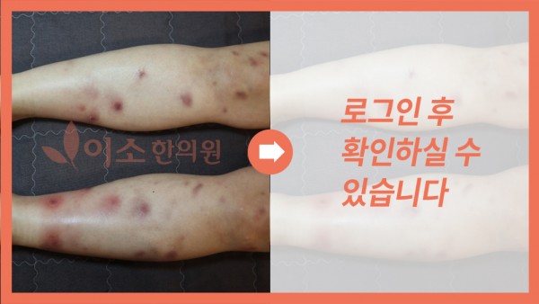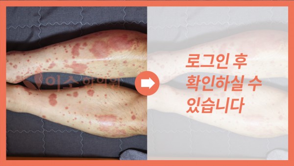 4년간 지속되었던 색소성자반증 치료 전후 입니다. 색소성자반증은 처음에는 국소적인 출혈반으로 시작하지만 점점 환부가 넓어지면서 갈색의 색소침착이 동반됩ㄴ다. 색소반이 짙어지거나 출혈부위가 넓어지면 치료기간이 오래 필요할 수 있으니 조기 진단과 치료가 필요 합니다.