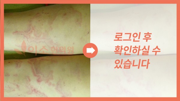 20년 된 두드러기를 약을 복용하므로 근근히 유지하셨으나 최근에 양약복용해도 진정되지 않으셔서 저희 한의원에 내원하신 50대 여성분이십니다. 체질검사를 통해 맞춤한약을 2달여 동안 복용하시며 체질에 맞는 식이요법교정과 침치료를 통해 현재에는 전에 먹던 약들을 끊으시고 회복되신 사례입니다.